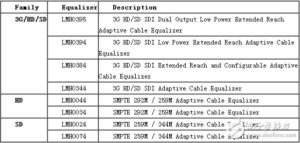 TI 提供支持SD、HD、3G SDI 全系列的均衡器,如表2 所示。