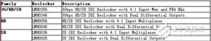SDI 線纜驅(qū)動(dòng)器用來(lái)加強(qiáng)對(duì)線纜的驅(qū)動(dòng)能力,提供標(biāo)準(zhǔn)的800mV 峰峰值輸出電壓擺幅,沒(méi)有預(yù)加重和去加重功能。TI 的線纜驅(qū)動(dòng)器系列如表4 所示。