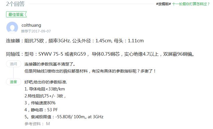 連接器的參數我基本清楚了。但是同軸線1樓給出的貌似都是材料,有沒有具體的參數指標呢?多謝了!