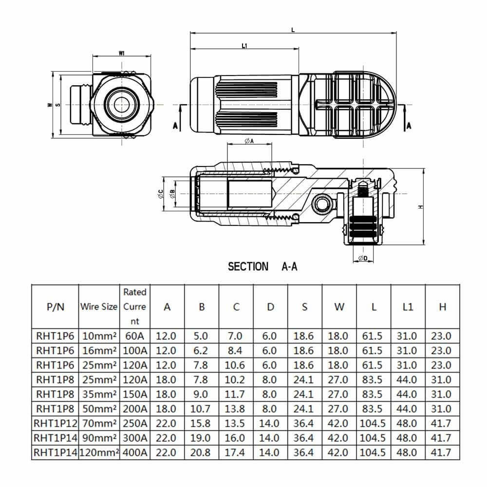 標簽:儲能連接器,彎式,插頭和插座,6mm,黑色,IP65,60A,帶孔銅牌
