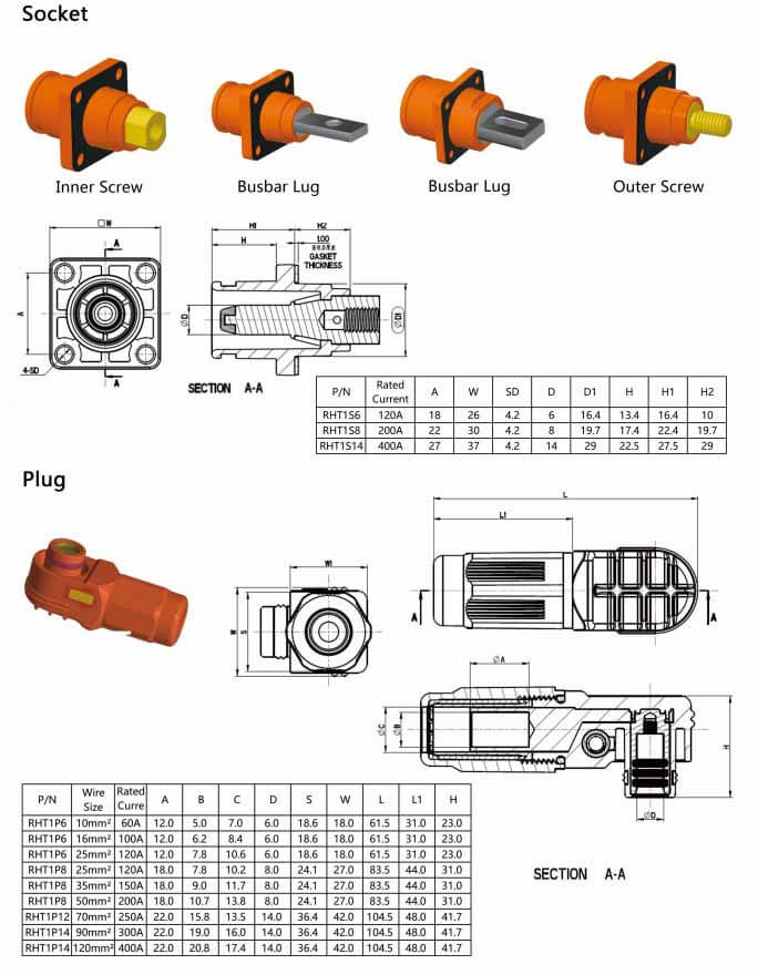 標簽:儲能連接器,彎式,插頭和插座,8mm,紅色,IP65,120A,帶孔銅牌