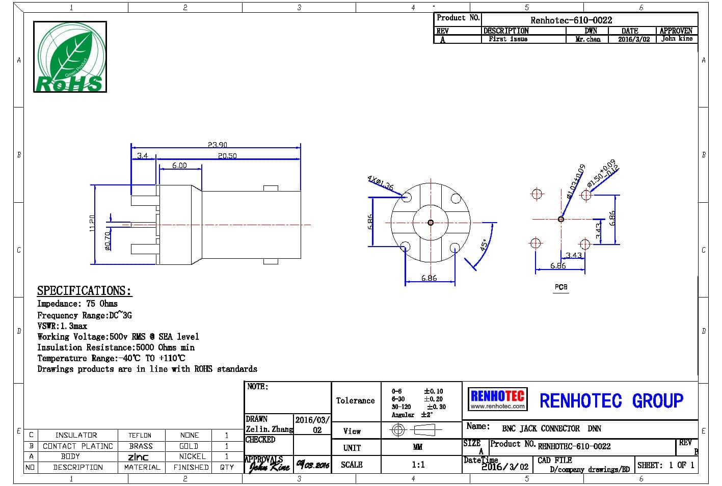 pcb 連接器BNC射頻同軸 直式鋅合金母頭