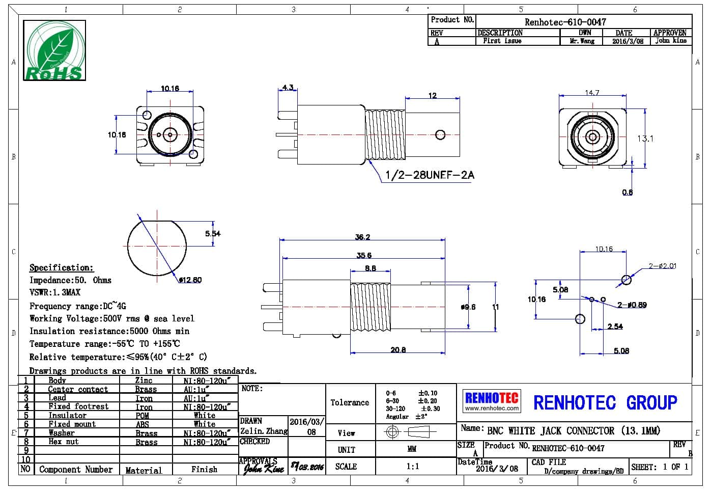 | 阻抗 | 50 ohm |