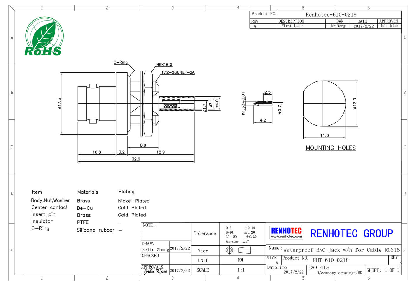 | 電壓駐波比 | 直式 ≦ 1.22/3GHz / 彎式≦ 1.30/3GHz |