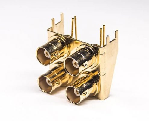 BNC母插頭彎式穿孔式接PCB板安裝鍍金