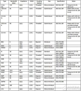 美國(guó)HP早在幾年前就已推出頻率已到110GHz的RF連接器。國(guó)內(nèi)通用產(chǎn)品使用頻率不超過(guò)40GHz。軟電纜使用頻率不超過(guò)10GHz,半剛電纜不超過(guò)20GHz。